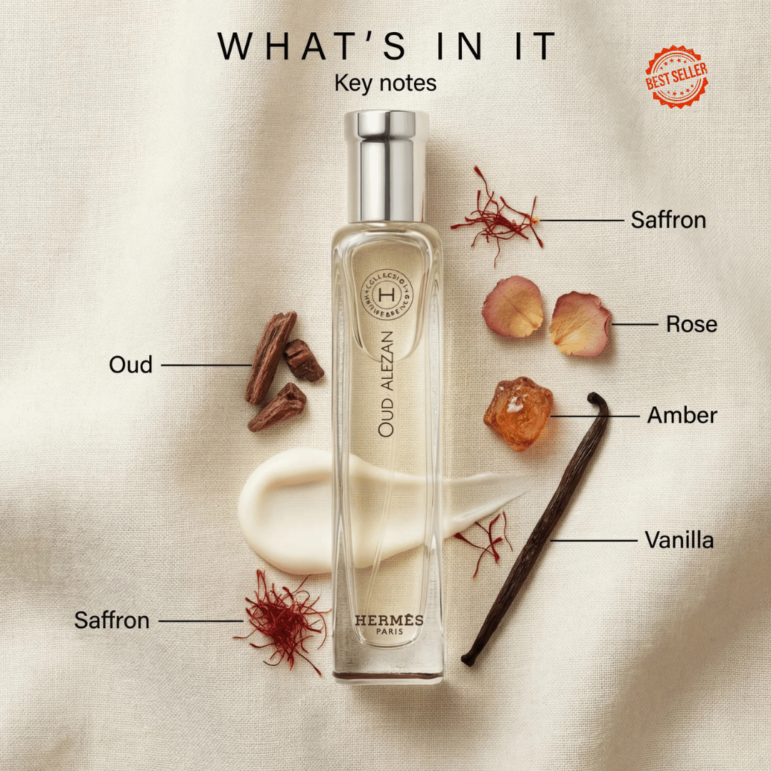 A refined woody-floral fragrance from the Hermessence collection, Oud Alezan pairs the depth of oud with a modern, rose-led contrast. Sleek, nuanced and beautifully balanced, it’s a unisex scent that feels warm, elegant and quietly bold.
